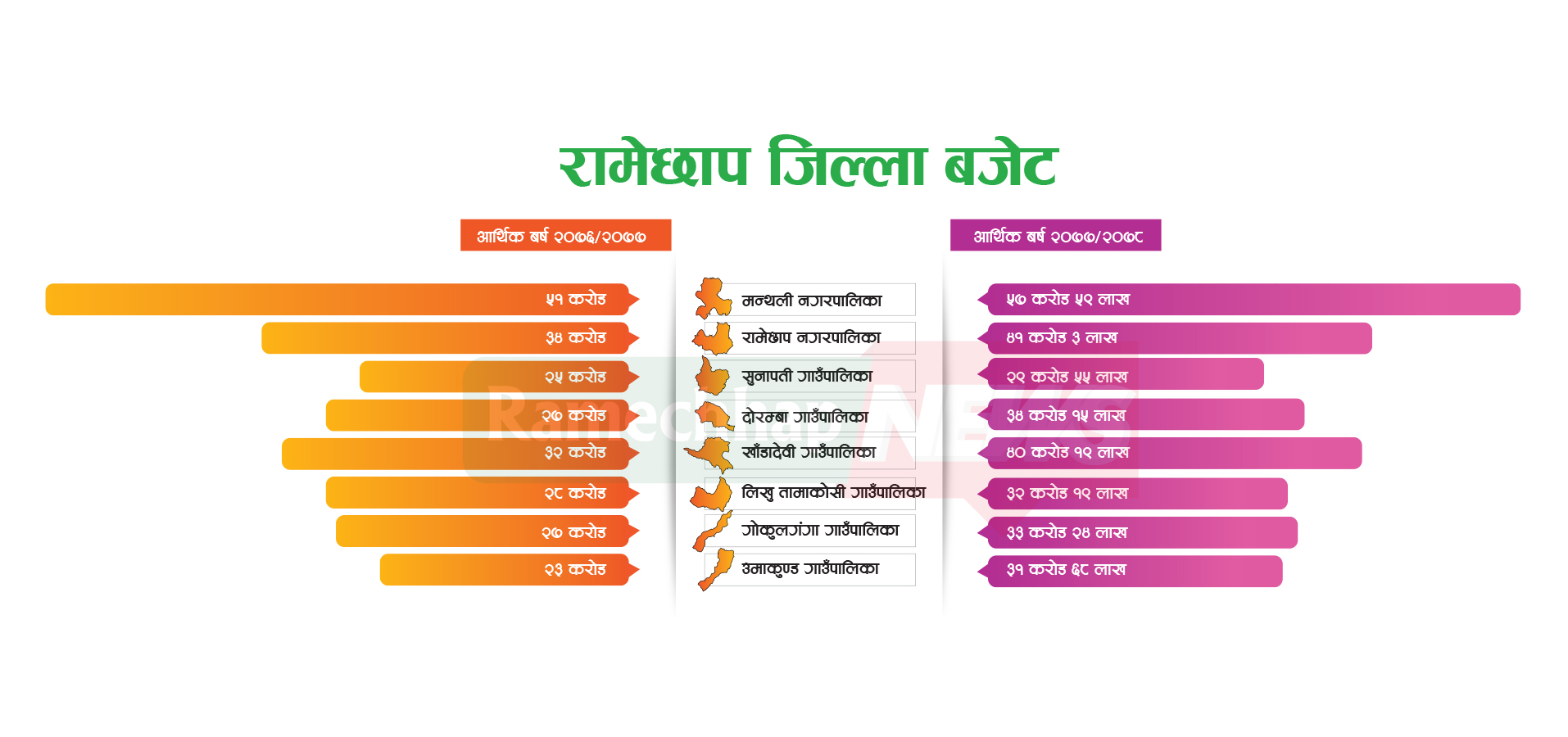 रामेछापका ८ वटा स्थानीय तहमा यस बर्ष कति बढयो बजेट ?