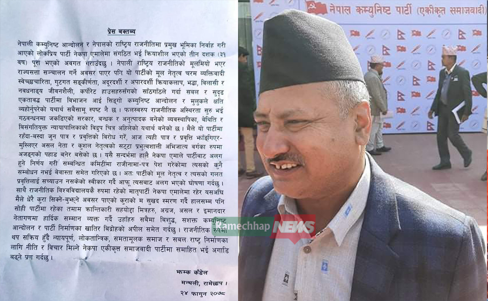 एमाले रामेछापका नेता झम्क कँडेल एकीकृत समाजवादी प्रवेश