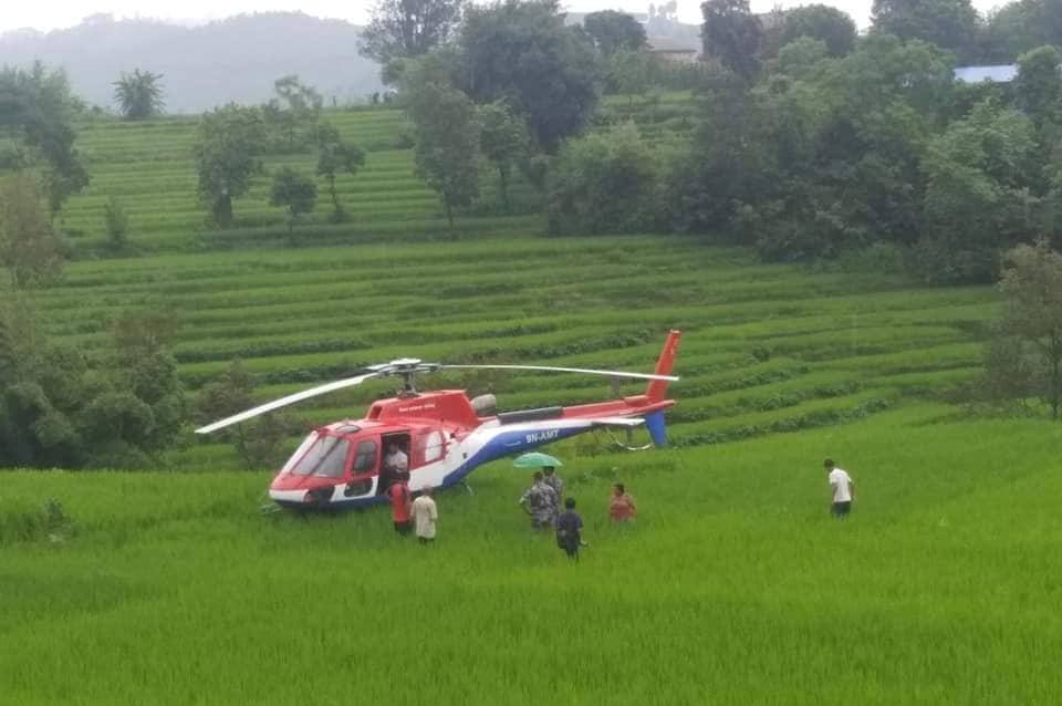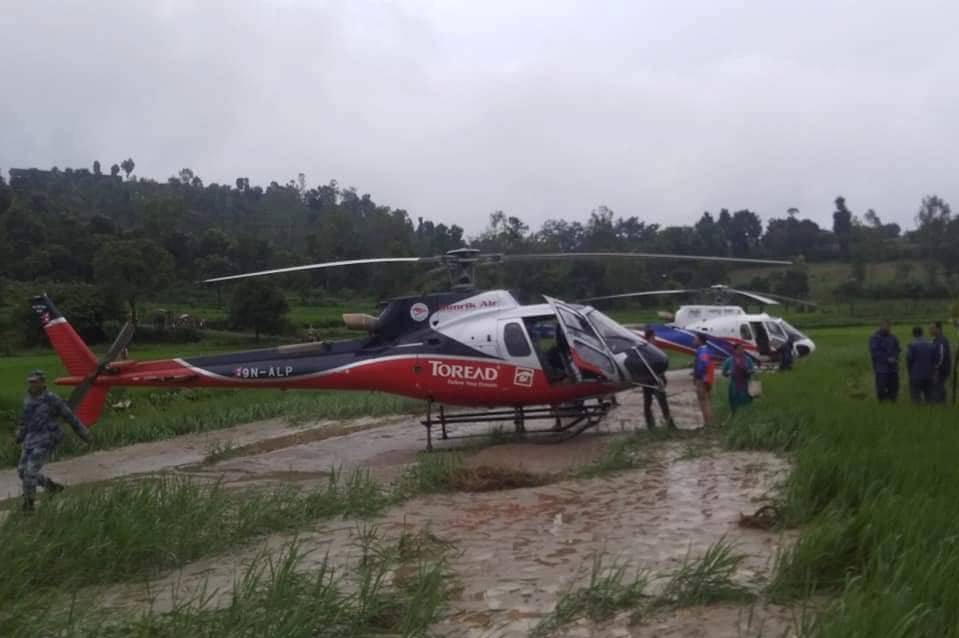 नेपालथोक र पाँचखालमा सात वटा हेलिकोप्टर धान खेतमा आकास्मिक अवतरण