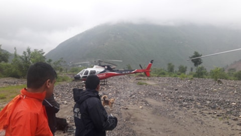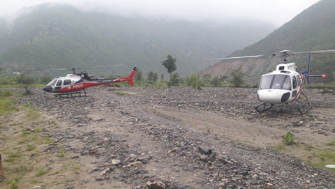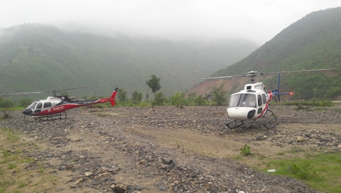 नेपालथोकको बगरमा हेलिकोप्टर अवतरणः स्थानीय अचम्मित (फोटोफिचर)