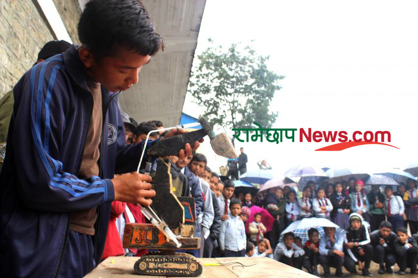 रामेछापमा कक्षा ८ मा पढने विद्यार्थीले बनाए हेलिकोप्टर र स्काभेटर