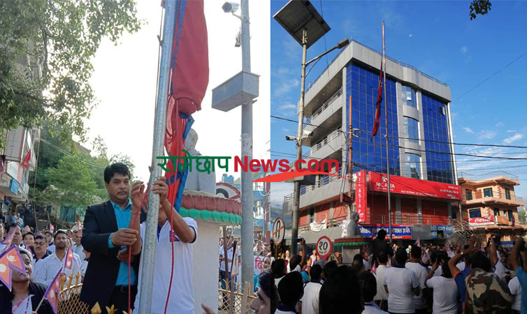 मन्थलीको देवकोटा चोकमा राखियो रामेछाप जिल्लाकै अग्लो राष्ट्रिय झण्डा