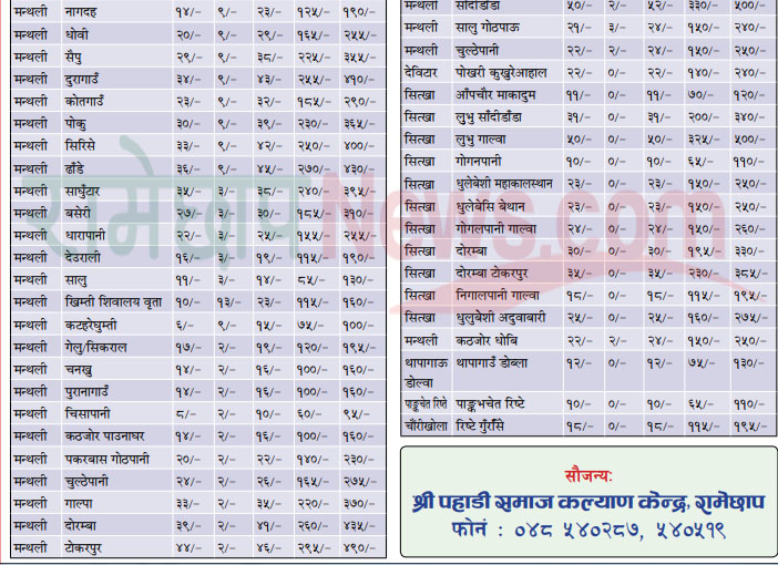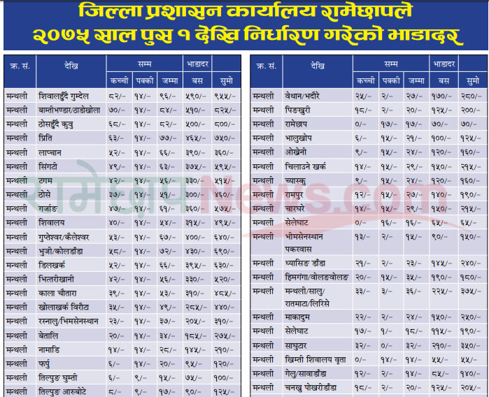 रामेछापभित्र कुन स्थानीय तहमा पुग्न कति भाडा ? (सूचिसहित)