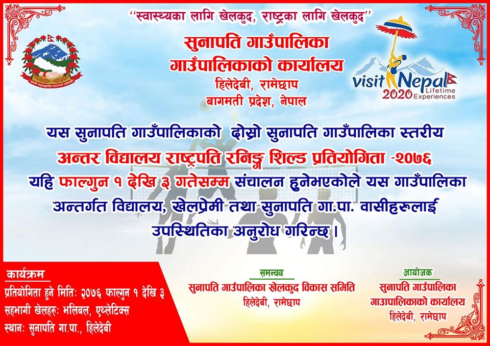 सुनापती गाउँपालिका स्तरीय राष्ट्रपति रनिङ शिल्ड प्रतियोगीता हुने