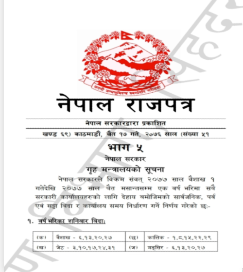 २०७७ सालमा ६४ दिन सार्वजनिक बिदा (सूचीसहित)