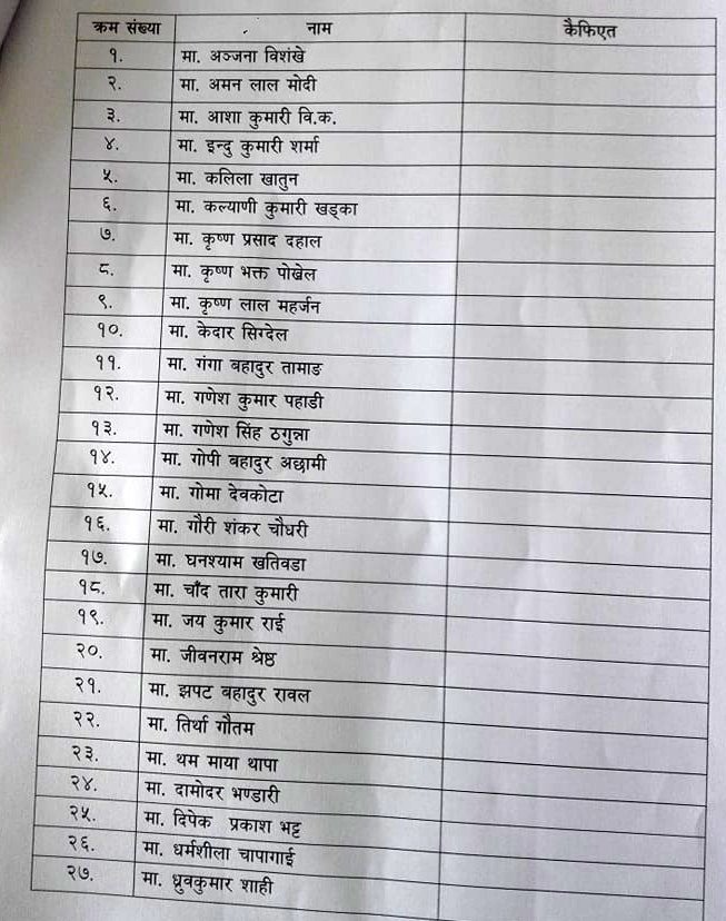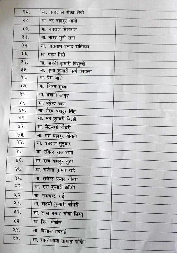पार्टी विभाजन नगर्न नेतृत्वलाई सांसद श्रेष्ठसहित ६१ सांसदको अपिल (नामावलीसहित)