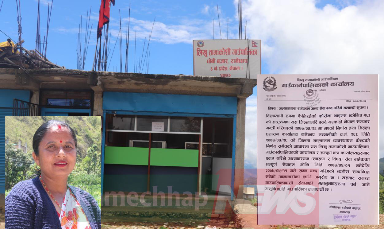 देशभर कोरोना संक्रमितको संख्या बढदै जान थालेपछि गाउँपालिकाभित्र संक्रमण फैलिन नदिन लिखु तामाकोसी गाउँपालिकाले अत्यावश्यक बाहेकका अन्य सेवा बन्द गर्ने निर्णय गरेको छ । कोरोना फैलिन नदिन गाउँपालिकाले आजबाट भदौ ११ गतेसम्म सेवा बन्द गर्ने निर्णय गरेको हो ।