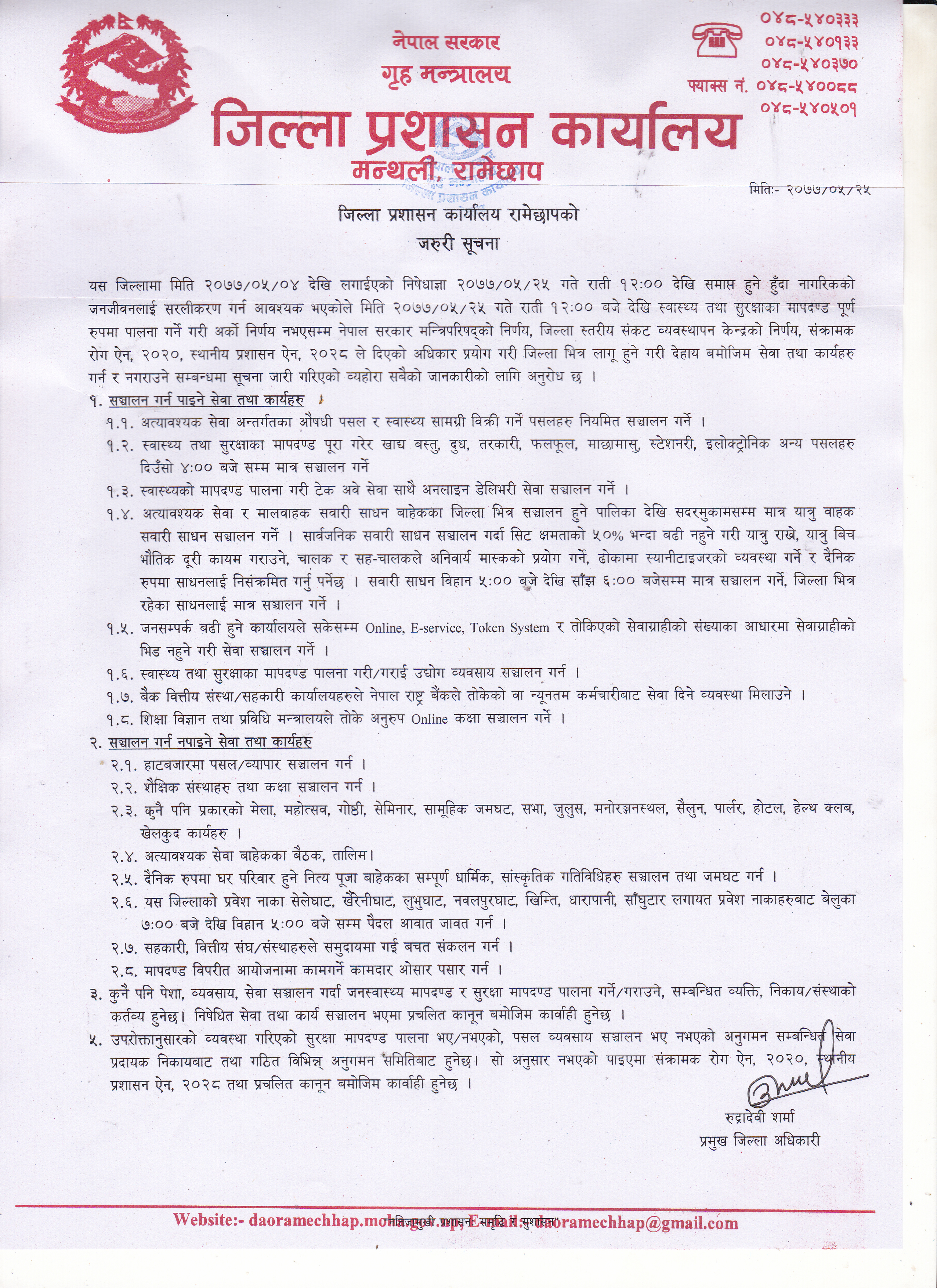 रामेछापमा निषेधाज्ञा हटाइयो, सार्वजनिक यातायात पनि चल्ने, के खुल्ने के नखुल्ने (सूचीसिहत)