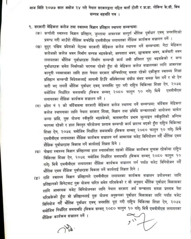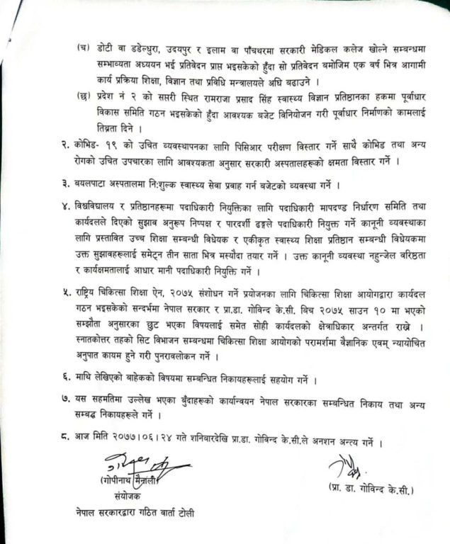 अनशनरत डा. केसी र सरकारबीच ८ बुँदे सहमति (पूर्णपाठसहित)