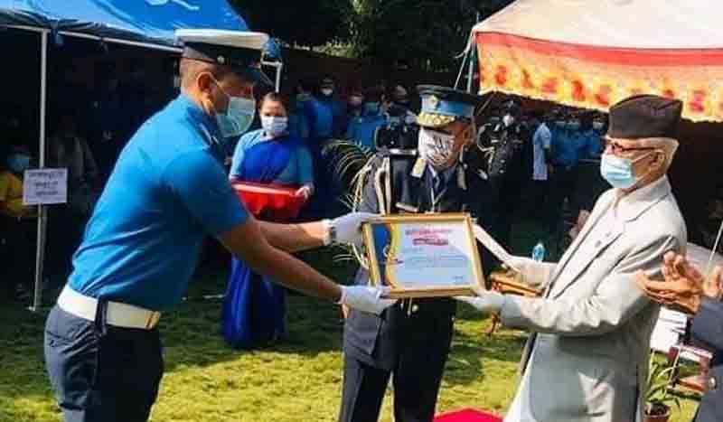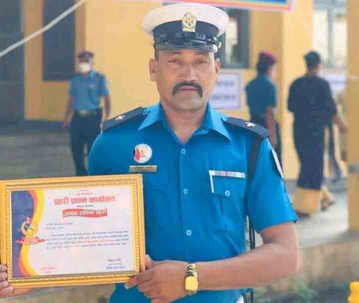 रामेछापका ट्राफिक प्रहरी प्रमुख पाण्डे पुरस्कृत