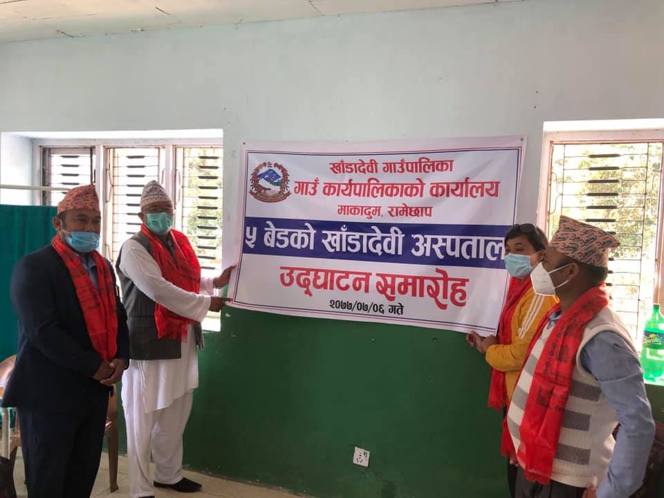 खाँडादेवी गाउँपालिकाका अध्यक्ष प्रेम बहादुर तामाङ र उपाध्यक्ष मखमली श्रेष्ठले पाँच शैयाको अस्पतालको संयुक्त रुपमा उदघाटन गर्नुभयो । अस्पतालको उदघाटन गर्दै गाउँपालिकाका अध्यक्ष प्रेम बहादुर तामाङले गाउँपालिकाभित्र पहिलो पटक अस्पताल सञ्चालनमा आउनु खुसीको विषय भएको बताउनुभयो ।