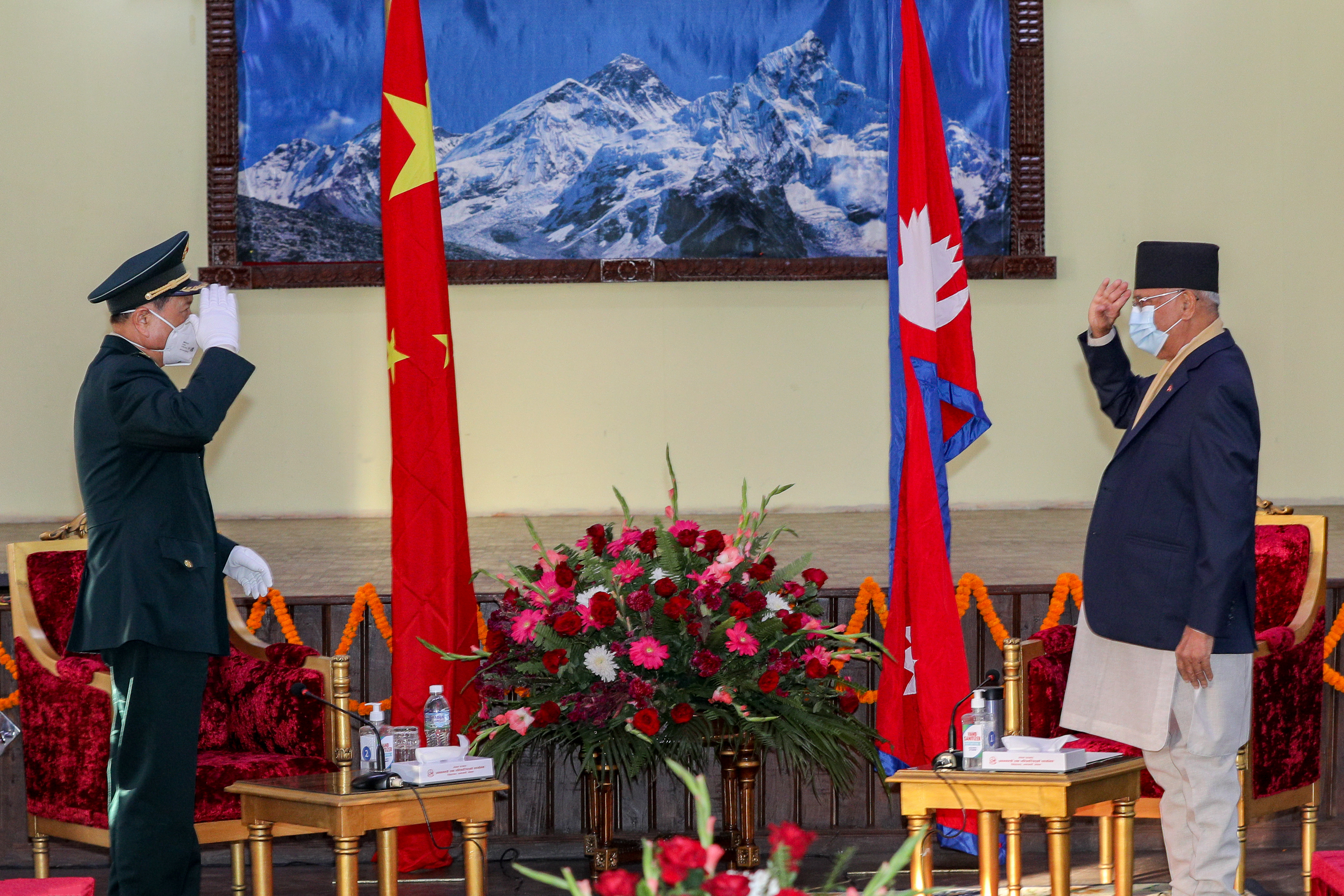 रक्षा मन्त्रालयको कार्यभार सम्हाल्नुभएका प्रधानमन्त्री ओलीले चीनले नेपालमा दूरसञ्चार, रेल, विद्युत्, आर्थिक र सामाजिक क्षेत्रको पूर्वाधार विकासमा गर्दै आएको सहयोगप्रति आभार व्यक्त गर्नुभयो । उहाँले नेपाल समृद्धिका क्षेत्रमा चीनको विकास र सफलताबाट सिक्न चाहेको पनि जनाउनुभएको थियो ।