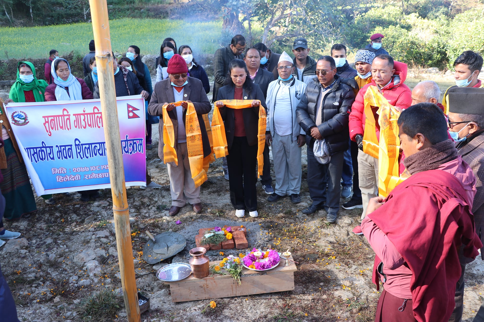 सुनापति गाउँपालिकाले प्रशासनिक भवन निर्माणको लागि निशुल्क रुपमा जग्गा उपलब्ध गराउने जग्गादाताहरुलाई सम्मान गरेको छ । गाउँपालिकाको केन्द्र हिलेदेवीमा निर्माण हुन लागेको प्रशासनिक भवन शिलान्यास कार्यक्रममा जग्गादाताहरुलाई सम्मान गरिएको हो । सुनापती गाउँपालिका जग्गा व्यवस्थापन समितिका संयोजक बिबि तामाङको नेतृत्वमा गाउँपालिकाको लागि करिब ८२ रोपनी जग्गा निशुल्क रुपमा जग्गा उपलब्ध गराएको थियो ।