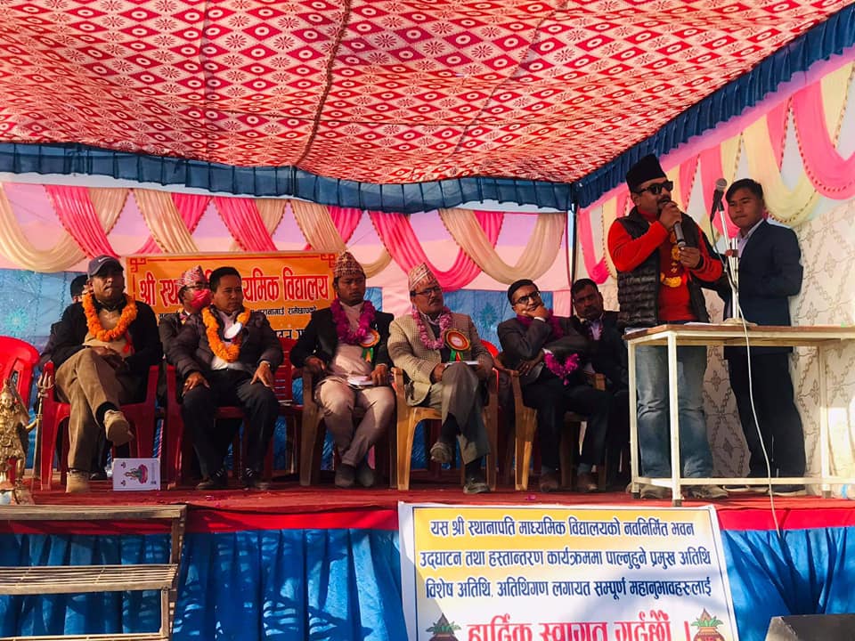 विद्यालय हस्तान्तरण कार्यक्रममा मन्थली नगरपालिकाका नगरप्रमुख रमेश कुमार बस्नेतले विद्यालय भवन निर्माणसँगै शिक्षाको गुणस्तर उकास्ने काममा शिक्षकहरु लाग्नु पर्ने बताए ।