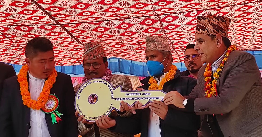 कार्यक्रममा नेपाली कांग्रेस रामेछापका सचिव लेखबहादुर कार्कीले विद्यालयमा शिक्षाको गुणस्तर उकास्न शिक्षक, अभिभावकको महत्वपूर्ण भूमिका हुने बताए । कार्यक्रममा निर्माण ब्यवसायी दिपेन्द्र कुमार कार्कीले तोकिएकै समयसीमाभित्र विद्यालय भवन निर्माण सम्पन्न गरिएको बताए । विद्यालय भवन निर्माणको क्रममा साथ सहयोग गर्ने विद्यालय परिवार अभिभावक र जनप्रतिनिधिहरुलाई सहयोग महत्वपूर्ण रहेको बताउदै विद्यालयको भौतिक संरचनालाई राम्रो बनाइ राख्न आग्रह गरे । कार्कीले विद्यालयकाे साँचाे नगरप्रमुख बस्नेतलाइ हस्तान्तरण गरेका थिए ।