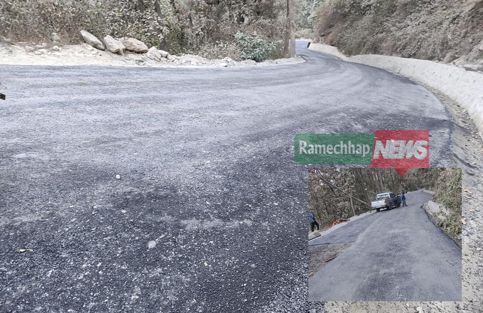 रामेछापको खिम्ती–ठोस–गुम्देल सडक धमाधम कालोपत्रे हुँदै