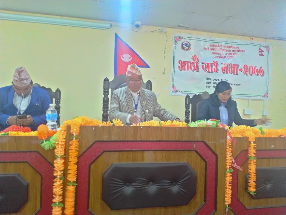 खाँडादेवी गाउँपालिकाको आठौ गाउँसभा (हिउँदे अधिवेशन) आजबाट सुरु भएको छ । गाउँपालिकाले बनाएको नीति तथा कार्यक्रम र बजेट कार्यान्वयनको बारेमा सभामा छलफल हुनेछ । गाउँसभामा कार्यपालिकाका सदस्यहरुले गाउँपालिकाबाट भइरहेको विकास निर्माणको कामको बारेमा उठाएको प्रश्नको गाउँपलिकाका अध्यक्ष प्रेम बहादुर तामाङ, उपाध्यक्ष मखमली श्रेष्ठ र प्रमुख प्रकासकीय अधिकृत विकास सुन्दासले जवाफ दिने कार्यक्रम रहेको छ ।