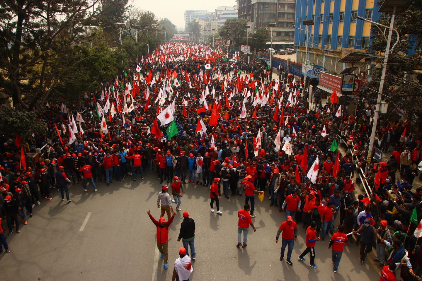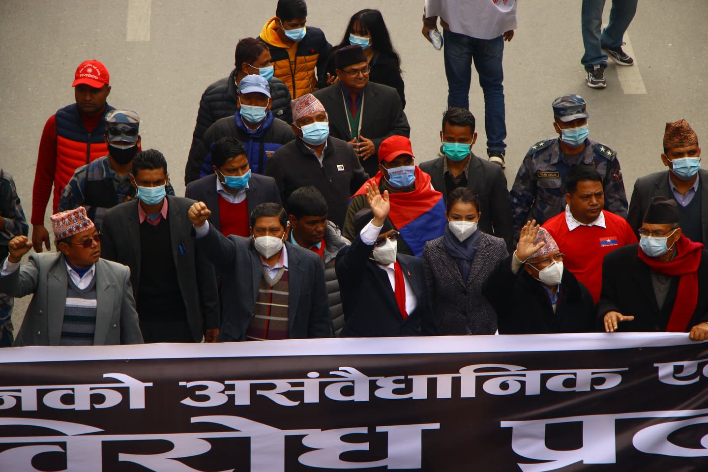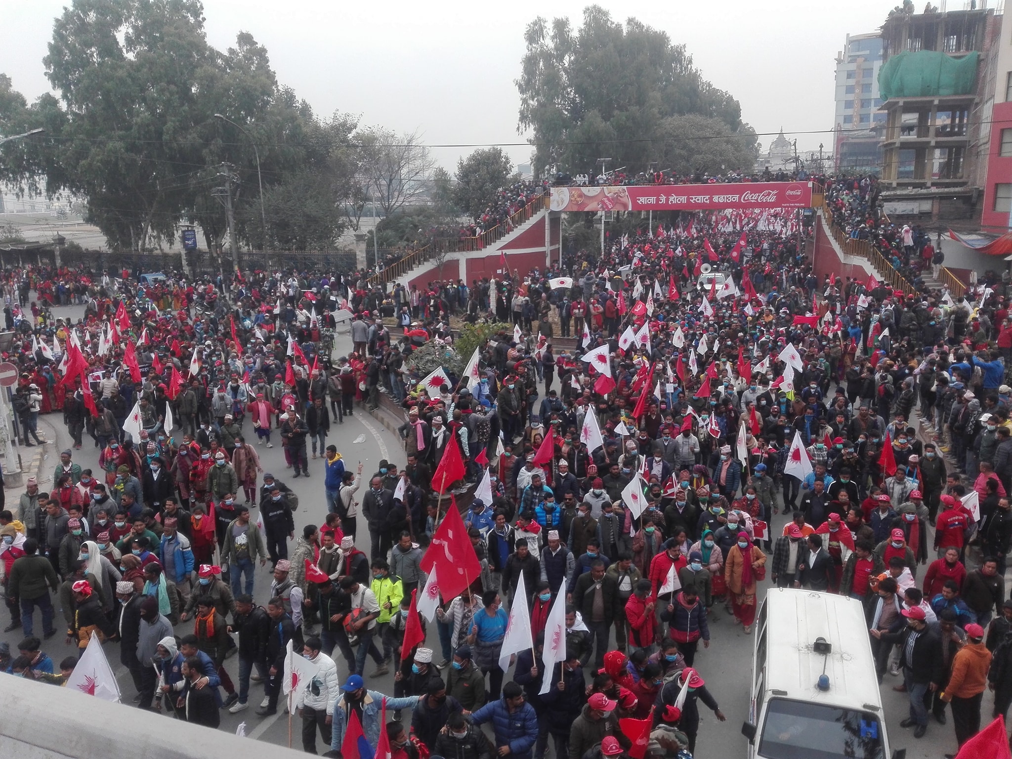 माइतीघर, पुल्चोक, त्रिपुरेश्वर, केशर महल र जमलबाट जुलुस निस्किएको ती जुलुसहरु सुन्धारामा पुगेर मूल जुलुसमा मिसिएको थियो । मुल जुलुसको नेतृत्व अध्यक्ष प्रचण्ड, माधव नेपाल लगायतले नेतृत्व गर्दै कार्यक्रमस्थल भृकुटीमण्डपमा पुगेर विरोधसभामा परिणत भएको थियो । विरोध सभामा नेताहरुले बोल्ने कार्यक्रम सुरु भएको छ ।