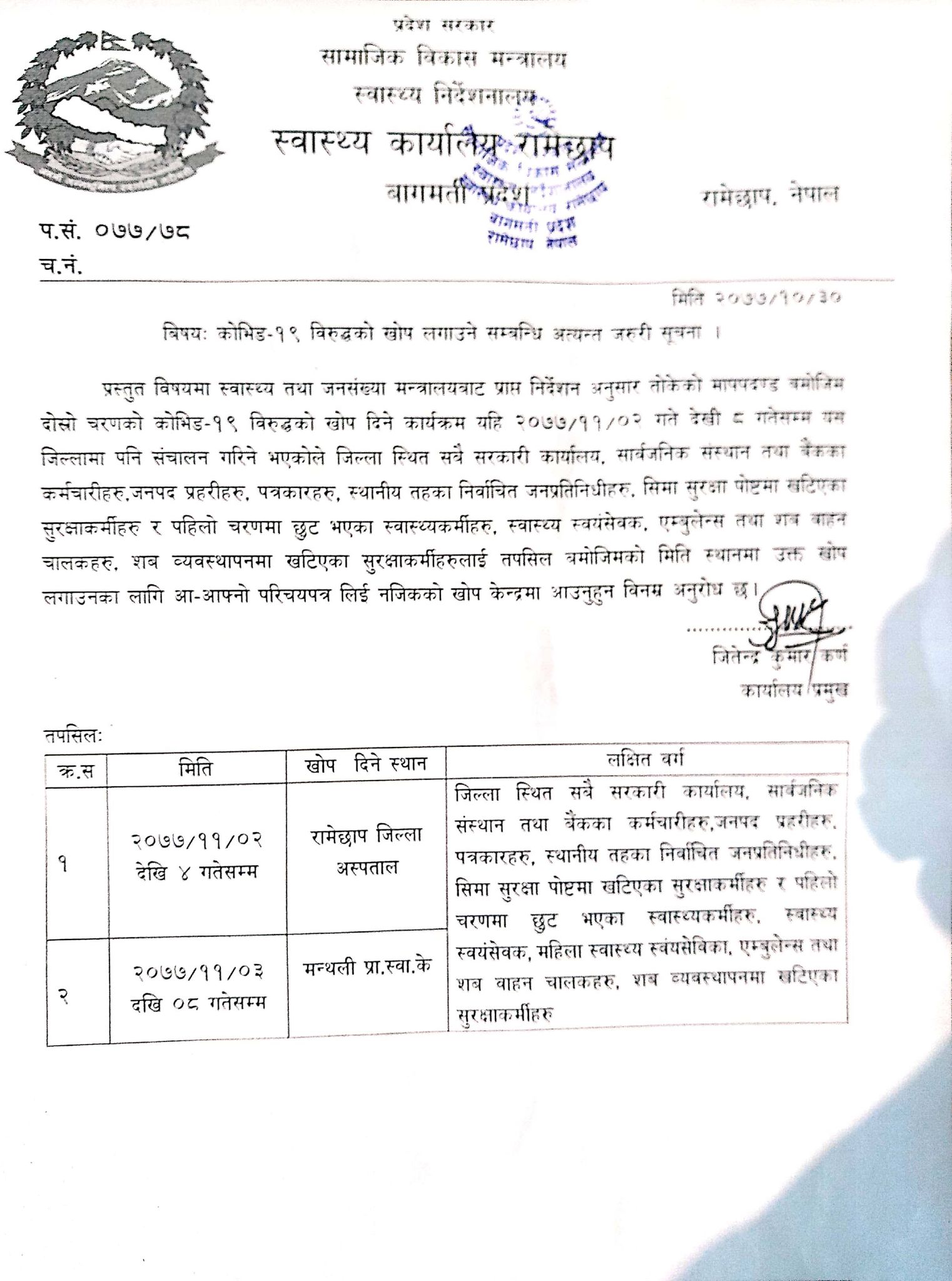 रामेछापका थप २१ सय जनालाई कोरोनाविरुद्धको खोप लगाइने