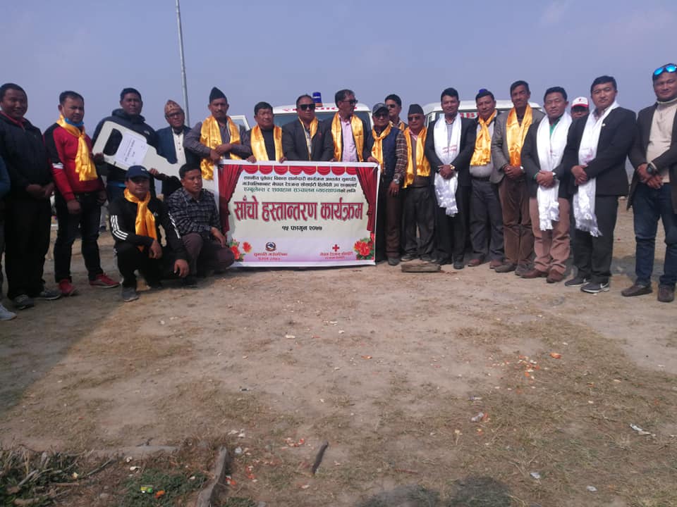 स्थानीय पूर्वाधार विकास साझेदार कार्यक्रम अन्तर्गत खरिद गरिएको एम्बुलेन्स र शव वहानको साचो  रेडक्रस सोसाइटीलाइ हस्तान्तरण गर्दै उनले निर्वाचनमा गरेको प्रतिबद्धता पूरा गर्न पाउदा खुसी लागेको बताए । सांसद श्रेष्ठको पहलमा सुनापति गाउँपालिकाले २५ लाखमा शव बहान र एम्बुलेन्स खरिद गरेको हो ।