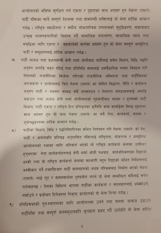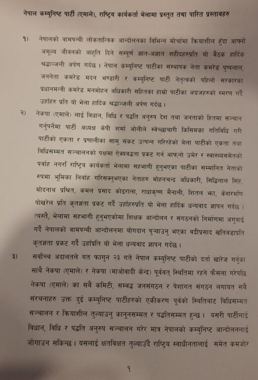 एमाले खनाल–नेपाल समुहद्धारा देशभरका पार्टी कमिटी ब्युँताउने घोषणा, १७ बुँदे प्रस्ताव पारित (पूर्णपाठसहित)