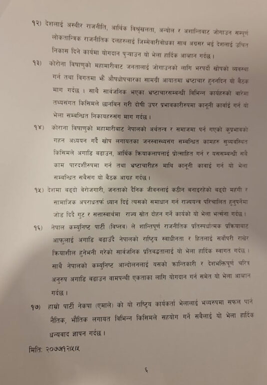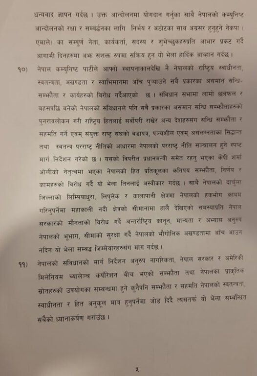 यस्तो छ जारी भएको १७ बुँदे प्रस्ताव