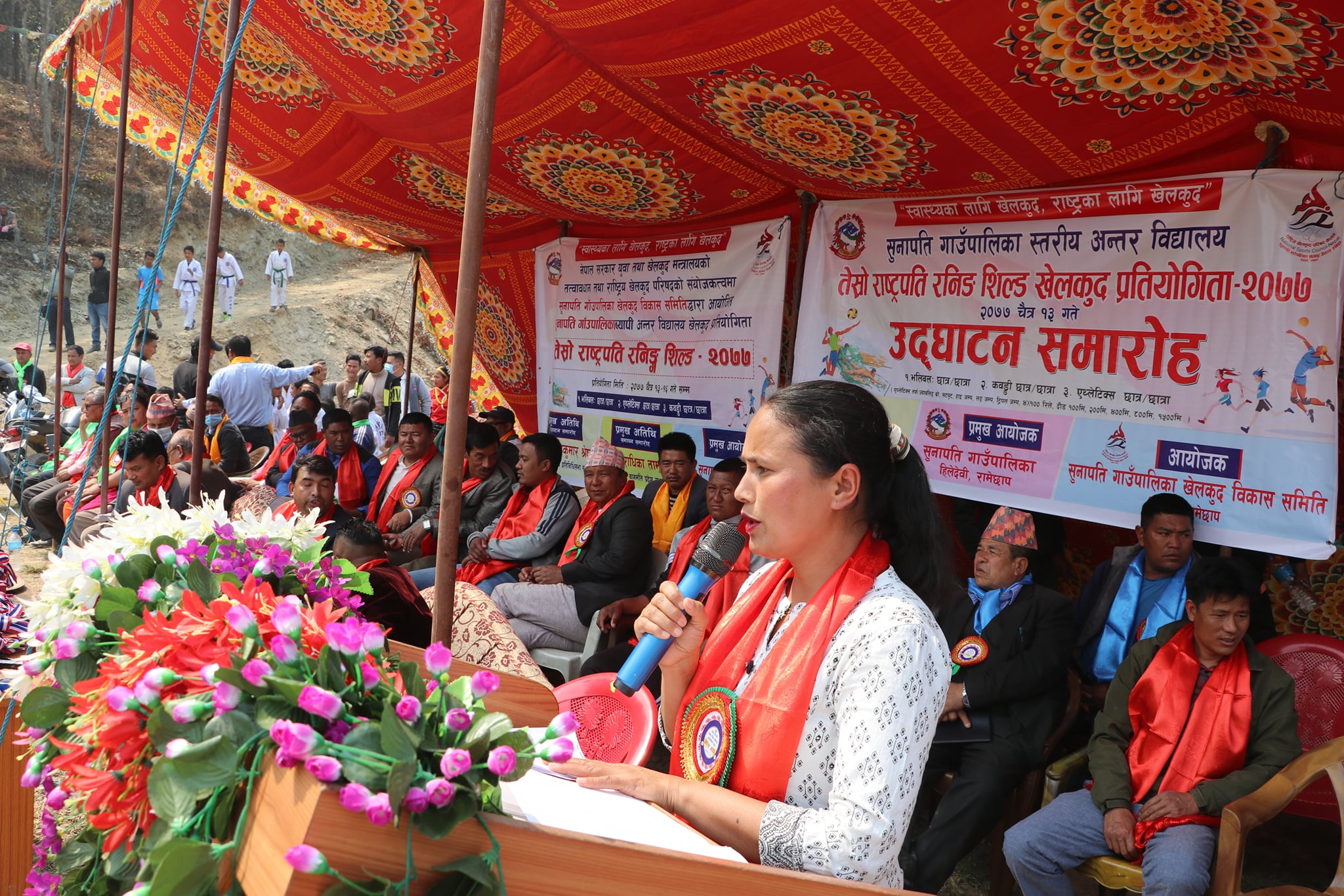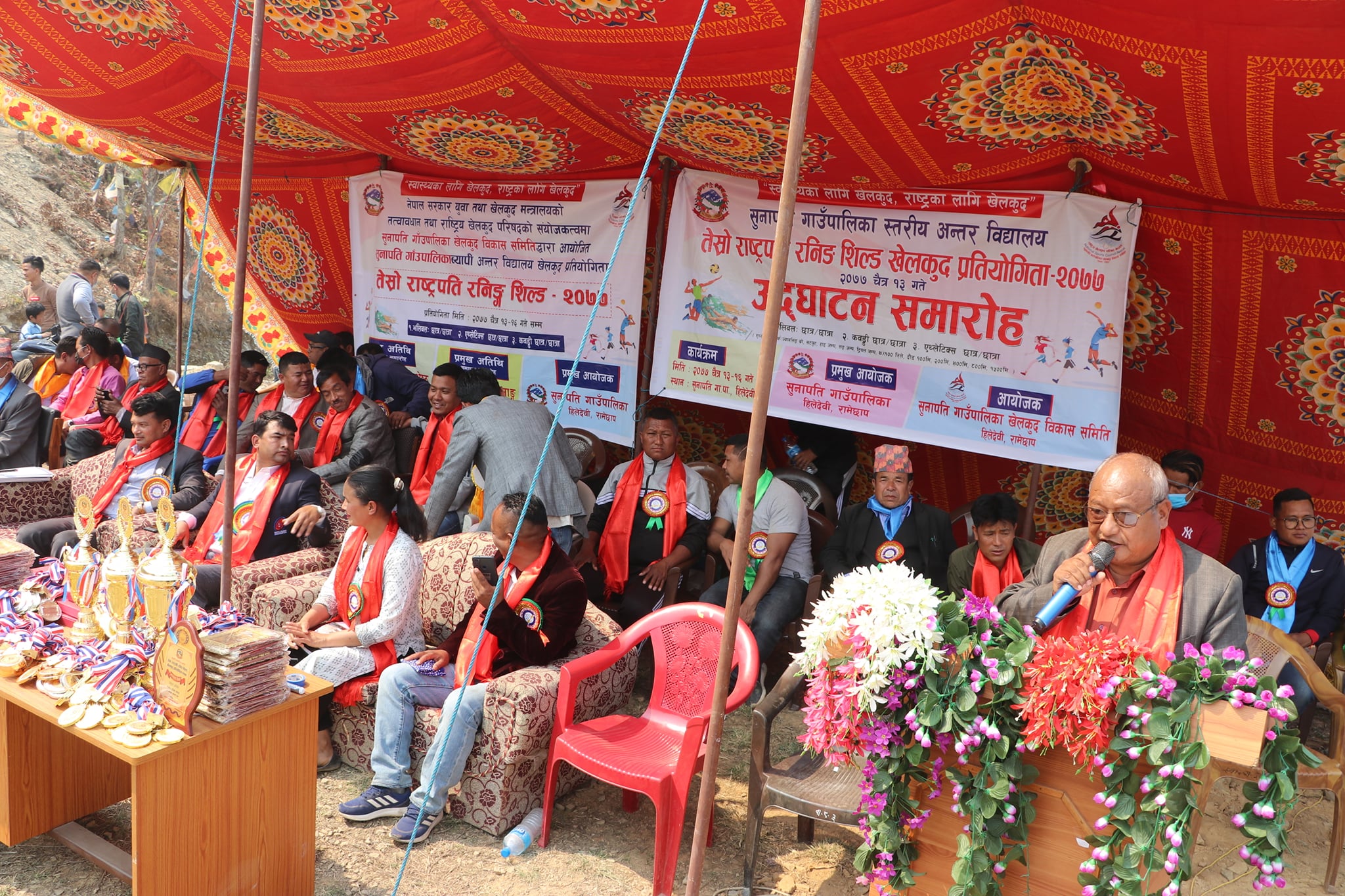 प्रतियोगिताको रामेछापका प्रतिनिधिसभा सांसद श्याम कुमार श्रेष्ठले खेलकुदको माध्यमबाट आफ्नो गाउँ ठाउँ र राष्ट्रलाई नै चिनाउन सकिने बताए । खेलकुद क्षेत्रको विकासको लागि पूर्वाधार निर्माण पहिलो शर्त भएको बताउदै आगामी दिनमा पूर्वाधार निर्माणमा आफूले सक्दो सहयोग गर्ने बताए ।