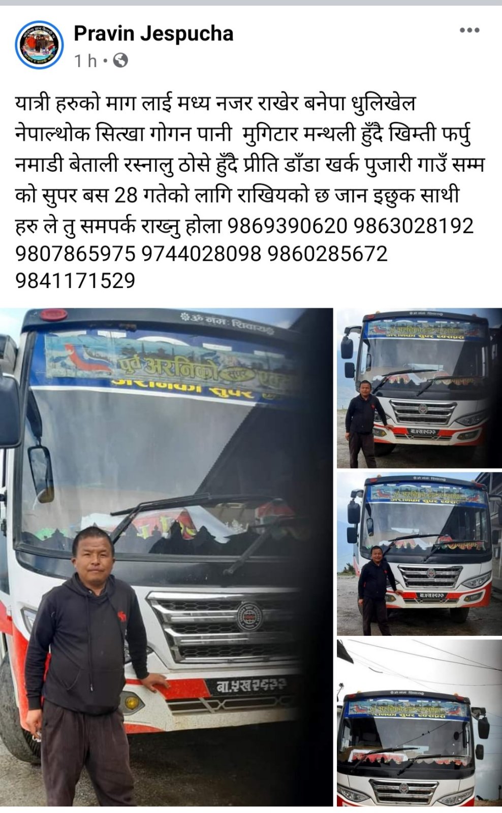 सामाजिक सञ्जालमा बसमा यात्रा गर्नको लागि यात्रुलाई आह्वान गर्ने, चर्को भाडा लिने चोर बाटोबाट यात्रुहरुसँग चर्को भाडा लिइ ओहोरदोहोर गर्न खोज्ने बसलाई पक्राउ गरिएको जिल्ला प्रहरी कार्यालय रामेछापले बताएको छ ।