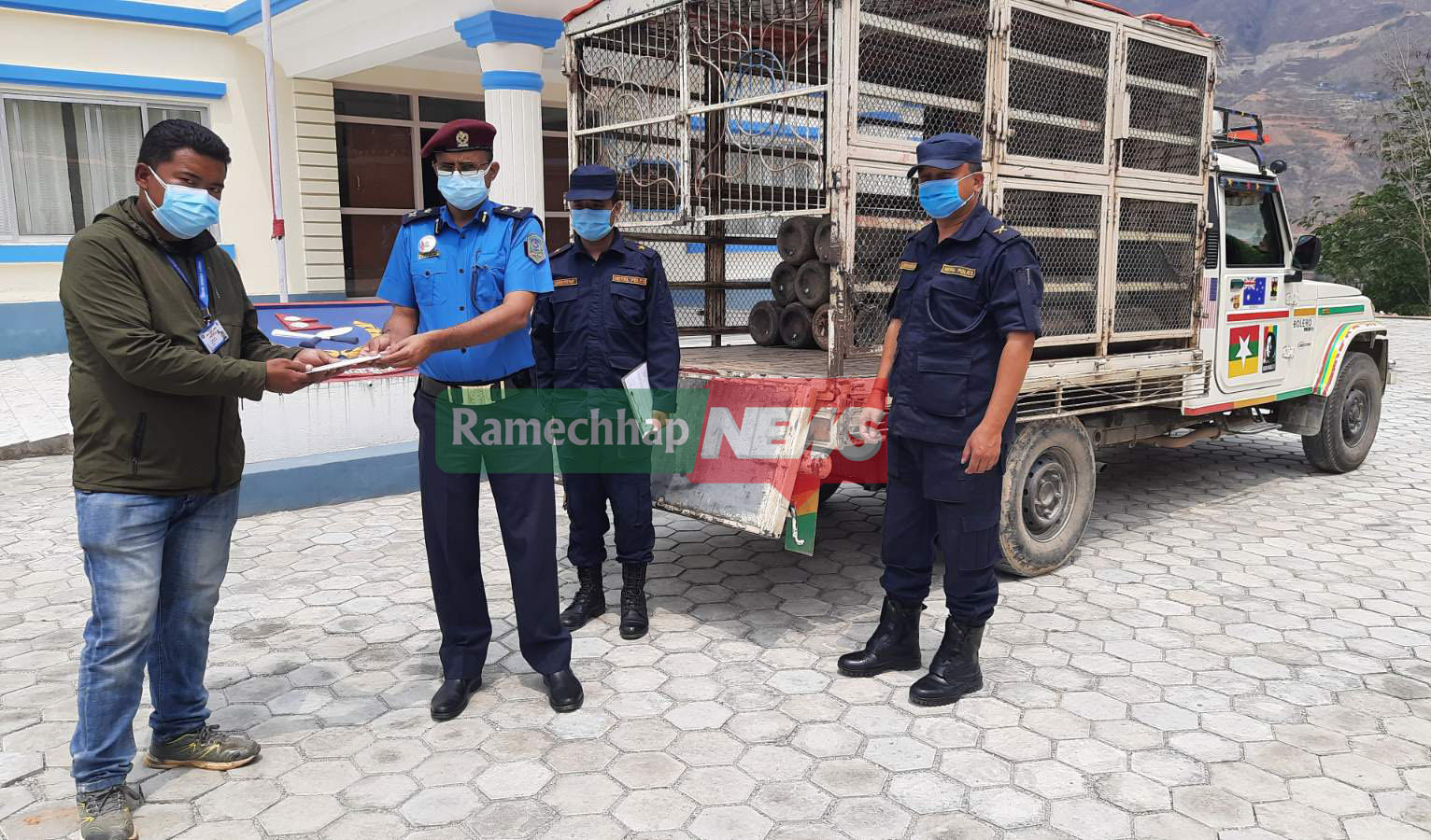 प्रहरीले संकलन गरेको २४ वटा अक्सिजन सिलिन्डर मध्य आज १५ वटा सिलिन्डर जिल्ला अस्पताल रामेछापलाई बुझाएको छ । संकलन गरिएको सिलिन्डिर जिल्ला प्रहरी कार्यालय रामेछापका डिएसपी नवराज ढुंगानाले आज अस्पतालका प्रतिनिधिलाई हस्तान्तरण गरेका हुन् ।