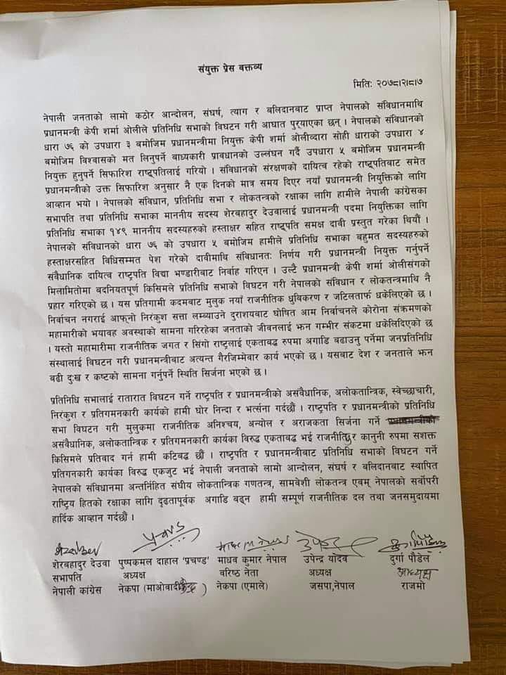 यस्तो छ पाँच दलको संयुक्त विज्ञप्ती