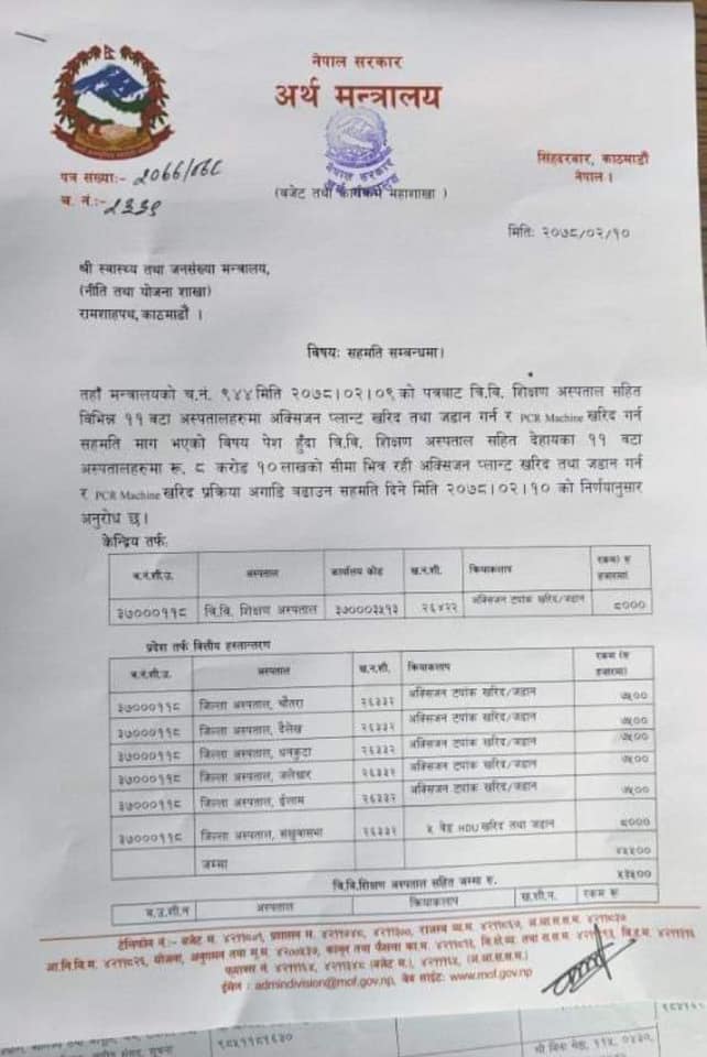 यसअघि जिल्ला अस्पताले बागमती प्रदेशको सामाजिक विकास मन्त्रालय र संघीय सरकारको स्वास्थ्य मन्त्रालयसँग अक्सिजन प्लान्टको लागि माग गर्ने निर्णय गरेको थियो । संघीय सरकारको अर्थ मन्त्रालयले ७५ लाख बजेट सुनिश्चित गरेसँगै प्लान्ट निर्माणको काम अगाडि बढने भएको हो ।
