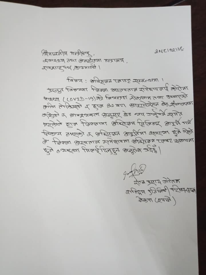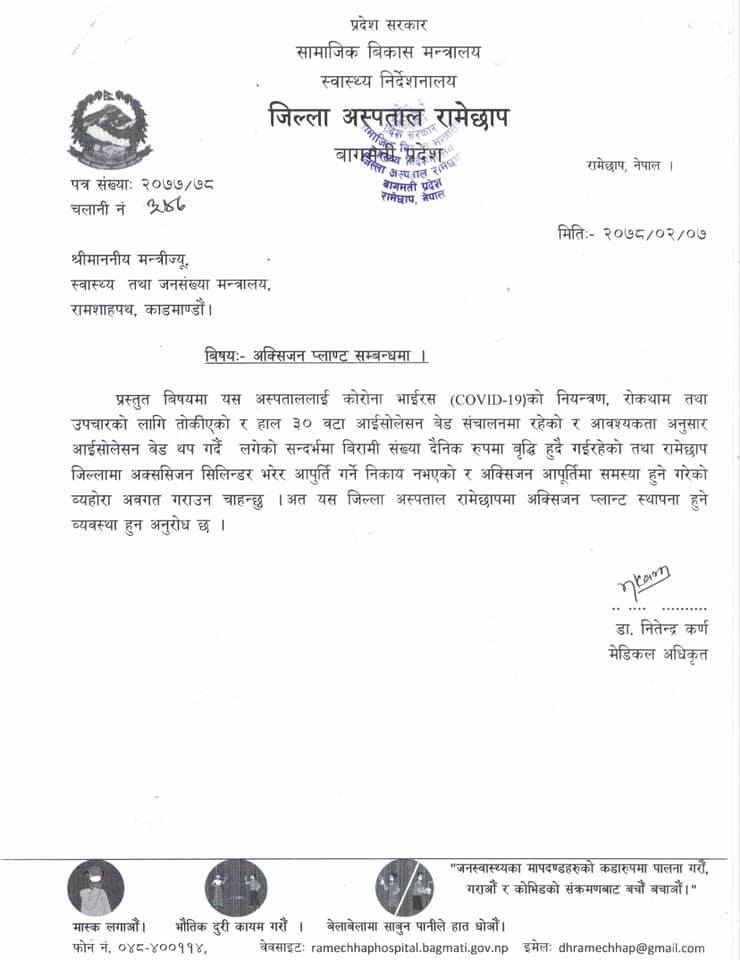 रामेछाप अस्पतालमा अक्सिजन प्लान्ट स्थापना हुने निश्चित, संघीय सरकारले दियो बजेट