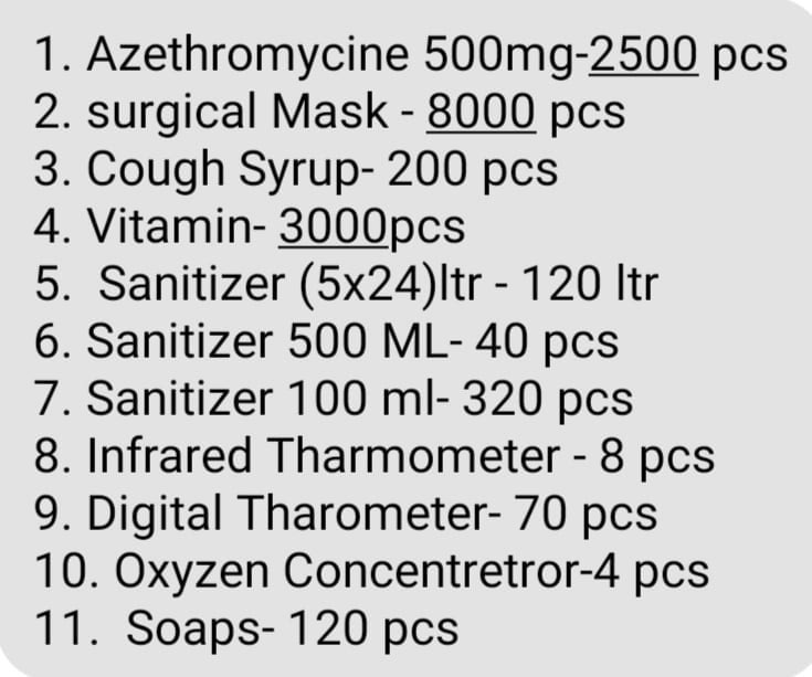यस्तो छ हस्तान्तरण गरिएको स्वास्थ्य सामाग्रीको विवरणः