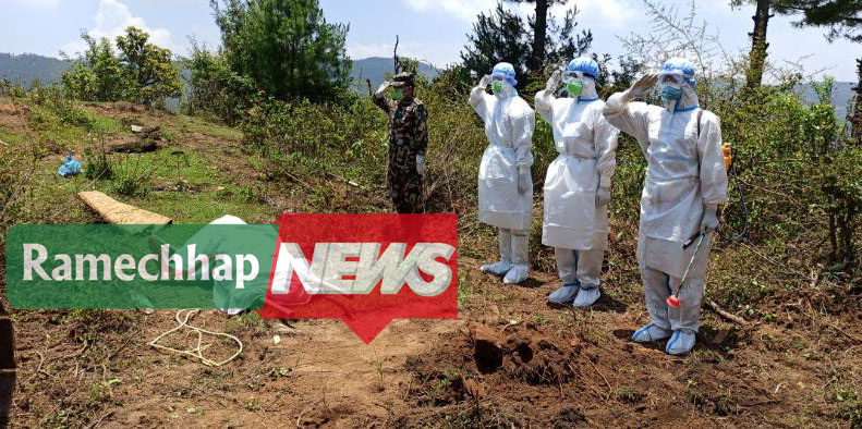 झण्डै एक महिनाको अवधिमा रामेछापमा मात्र कोभिडबाट १६ जनाको निधन भएको स्वास्थ्य कार्यालय रामेछापले बताएको छ । रामेछापमा नेपाली सेनाको टोलीले कोरानाबाट निधन भएका १० जनाको शव व्यवस्थापन गरेको नयाँ गोरख गण रामेछापका गणपति विष्णु सापकोटाले रामेछाप न्युजलाई बताए । कोभिडबाट निधन भएकाहरुको शव व्यवस्थापनको काममा तालिम प्राप्त टोली खटाइएको छ, आज मात्र मन्थली प्राथमिक स्वास्थ्य केन्द्र र जिल्ला अस्पतालमा निधन भएका दुई जनाको शव व्यवस्थाप गर्ने काम भएको छ, उनले भने ।