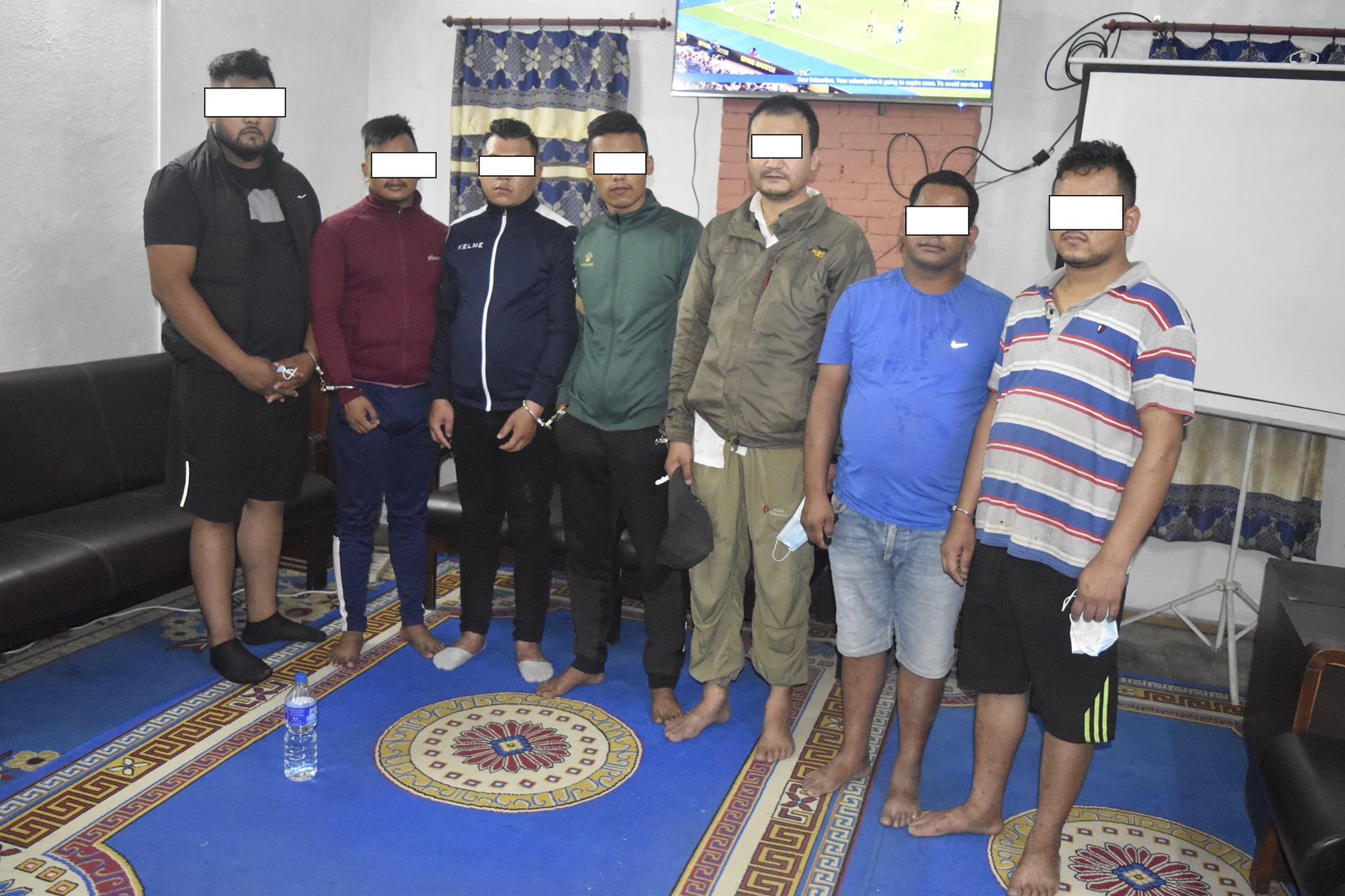 लुटपाट भएको भन्ने निवेदनका आधारमा प्रहरीले उनीहरूलाई पक्राउ गरेको कोइरालले जानकारी दिए । मुख्य योजनाकार बझाङ घर भएका भक्तपुरको सूर्यविनायक बस्ने ३४ वर्षीय धर्म ओखेडा रहेको प्रहरीले बताएका छन् । पक्राउ पर्नेमा म्यानवपावर व्यवस्थापक समेत रहेका दोलखा घर भई ठमेल बस्ने ३२ वर्षीय मनोजकुमार श्रेष्ठ, रामेछाप घर भइ नयाँ बजार बस्ने २७ वर्षीय दीपक थापा मगर, काभ्रे घर भई नयाँबजार बस्ने २७ वर्षीय विशाल लामा, २३ वर्षीय योङ्देन लामा र २२ वर्षीय रोशन श्रेष्ठलाई प्रहरीले पक्राउ गरेको छ ।