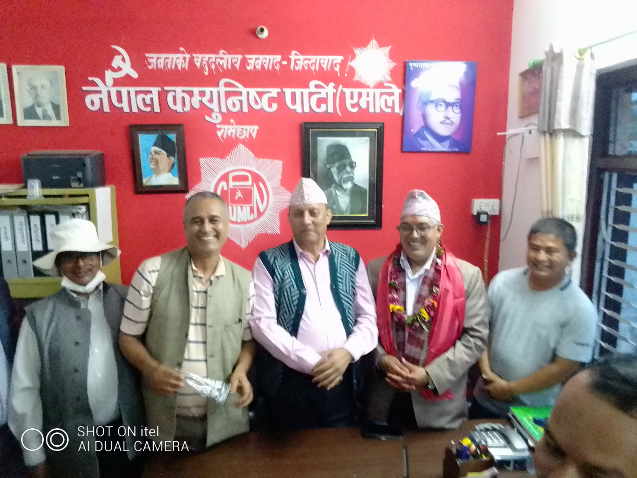 भोली हुने एमाले जिल्ला कमिटीको बैठकमा सहभागी हुन मन्त्री गृह जिल्ला आएका हुन् । रामेछापबाट मन्त्री भएको भन्दै पौडेललाई नेपाली कांग्रेस रामेछापका जिल्ला सभापति लवश्री न्याौपानेले एमालेको पार्टी कार्यालयमै पुगेर बधाई दिएका थिए । पार्टी कार्यालय परिसरमा राष्ट्रिय युवा संघ र अनेरास्ववियु रामेछापले स्वागत गरेका थिए ।