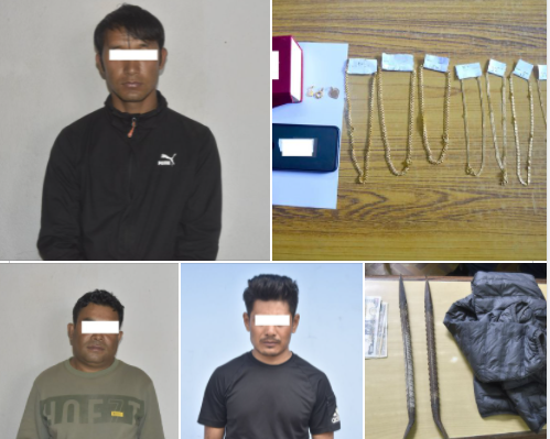 सहकारी र घर फाडेर चोरी गर्ने दोरम्बा शैलुङ गाउँपालिका–४ गौश्वराका कमल थापामगर र सोही वडाका धनलाल थापामगर पाँचथर फाल्गुनन्द गाउँपालिका–५ बस्ने हरि प्रसाद रसाईलीलाई महानगरीय अपराध महाशाखाबाट खटिएको प्रहरीको टोलीले पक्राउ गरेको हो । महाशाखाका अनुसार पक्राउ परेका तीनै जनालाई आज आवश्यक कारबाहीको लागी महानगरीय प्रहरी परिसर काठमाण्डौ पठाईएको छ ।