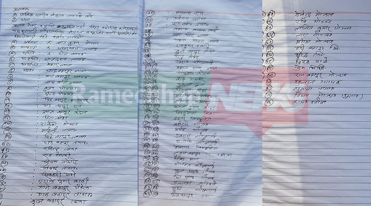 त्यसैगरी पदाधिकारीमा भने नयाँ अनुहार चयन भएका छन् । अधिवेशनले उपाध्यक्षमा अम्बरध्वज लामा, सचिवमा रोज ग्याबक, उपसचिवद्धयमा केशर लामा र आनन्द ग्याबलाई चयन गरेको छ । त्यसैगरी अधिवेशनले ७५ सदस्यीय गाउँकमिटीको सदस्य समेत चयन गरेको छ ।