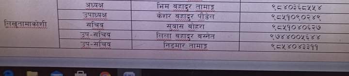 त्यसैगरी गाउँ कमिटीको अध्यक्षमा भिम तामाङ, उपाध्यक्षमा केशर पौडेल, सचिवमा सुवास बोहोरा, उपसचिवद्धयमा लिला बहादुर बस्नेत र निङमार तामाङ चयन भएका छन् । अधिवेशनले ७५ सदस्यीय कमिटी गाउँ कमिटीका सदस्य पनि चयन गरेको छ ।
