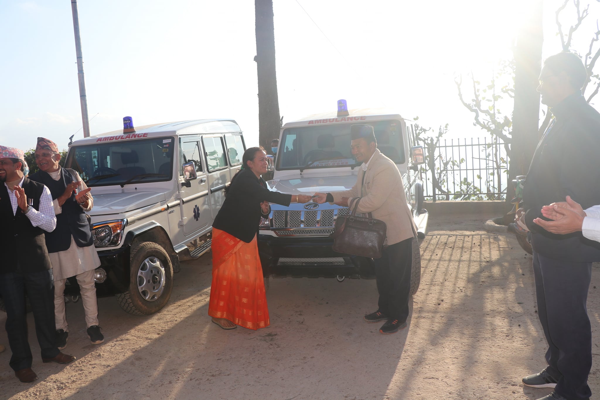 २१ लाख ७५ हजारमा खरिद गरिएको दुई वटै एम्बेलेन्स आज एक कार्यक्रमकोबीच नगरपालिकाका नगरप्रमुख नरबहादुर थापा मगर र उपप्रमुख सृजना खड्काले वडा नम्बर १ गोठगाउँ र वडा नम्बर ५ रामपुरलाई हस्तान्तरण गरेका हुन् । नगर उप्रमुख खड्काले नागरिकहरुले एम्बुलेन्सको अभावमा ज्यान गुमाउन नपरोस भनेर दुई वटा एम्बेलेन्स खरिद गरेर हस्तान्तरण गरिएको बताइन ।