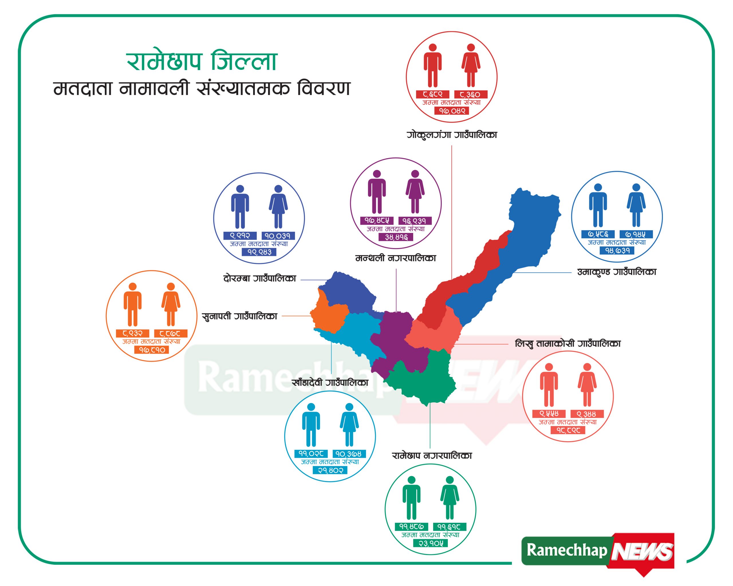 रामेछापमा मतदाताको संख्या १ लाख ६७ हजार पुग्यो, कुन स्थानीय तहमा कति (सूचीसहित)