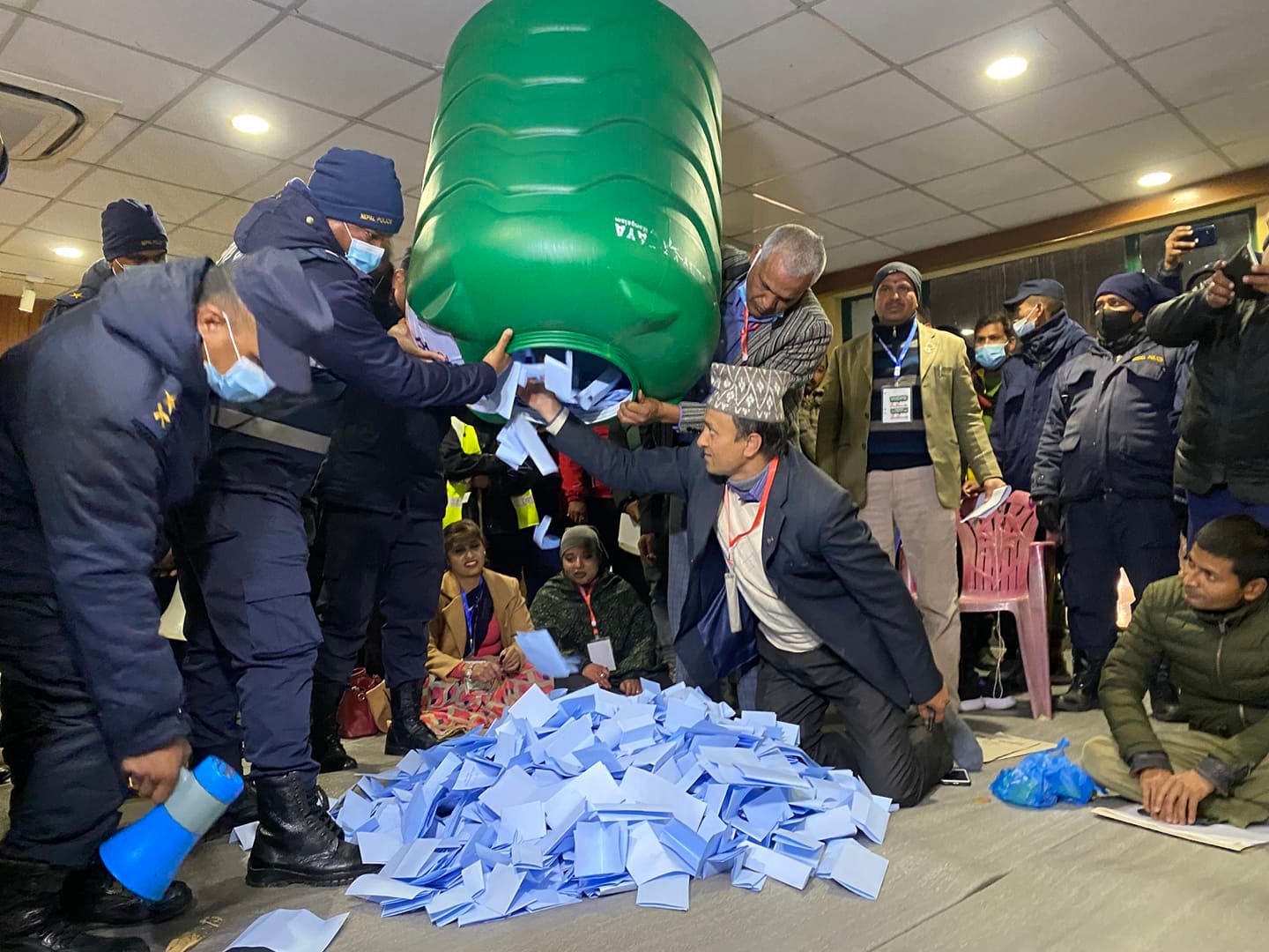 पहिलो चरणमा कुनै पनि उम्मेदवारले बहुमत नल्याएपछि भएको दोस्रो चरणको मतदानमा ४५६२ मत खसेको छ । अब सभापतिमा निर्वाचित हुन २२८२ मत चाहिन्छ । तीन घण्टाभित्र मतपरिणाम सार्वजनिक हुने बताइएको छ ।