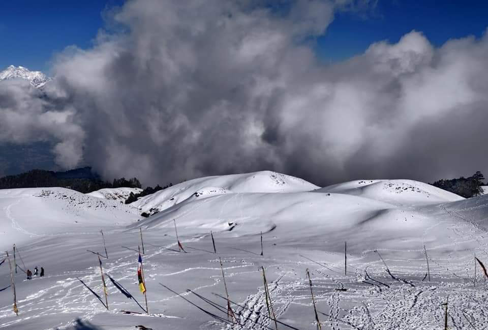 शैलुङमा हिउ परेसँगै हिउ खेल्ने पर्यटकको घुइँचो (फोटोफिचर)