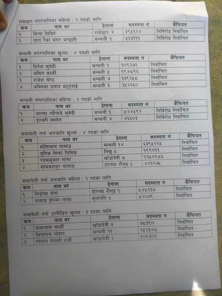 यी हुन एमाले रामेछापमा चुनाव जित्नेहरु, कसले कति मत पाए ? (नामसहित)