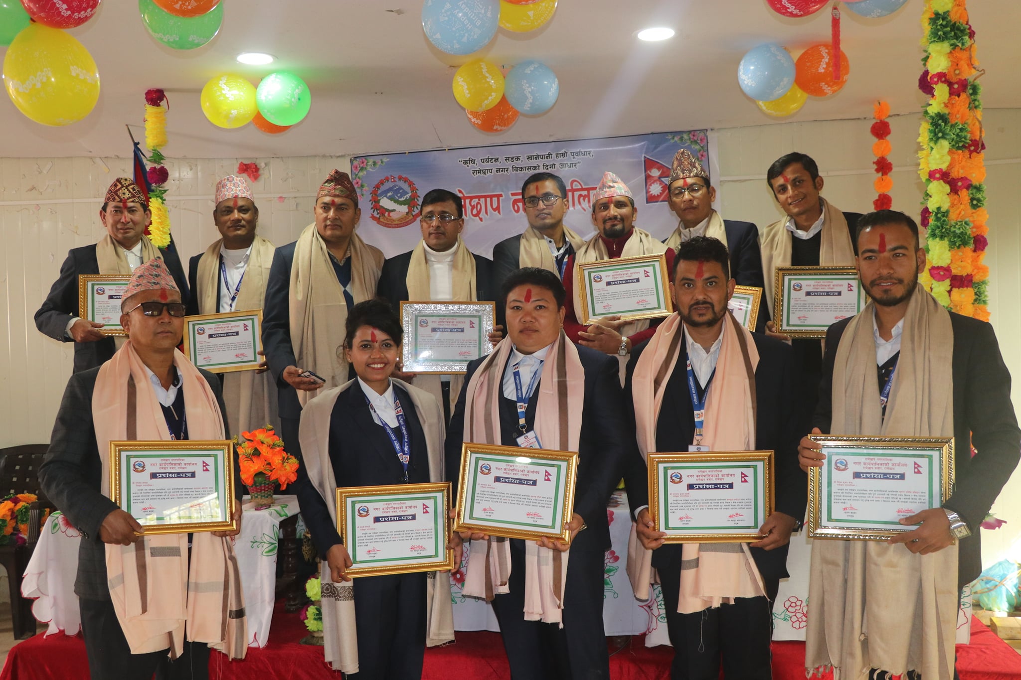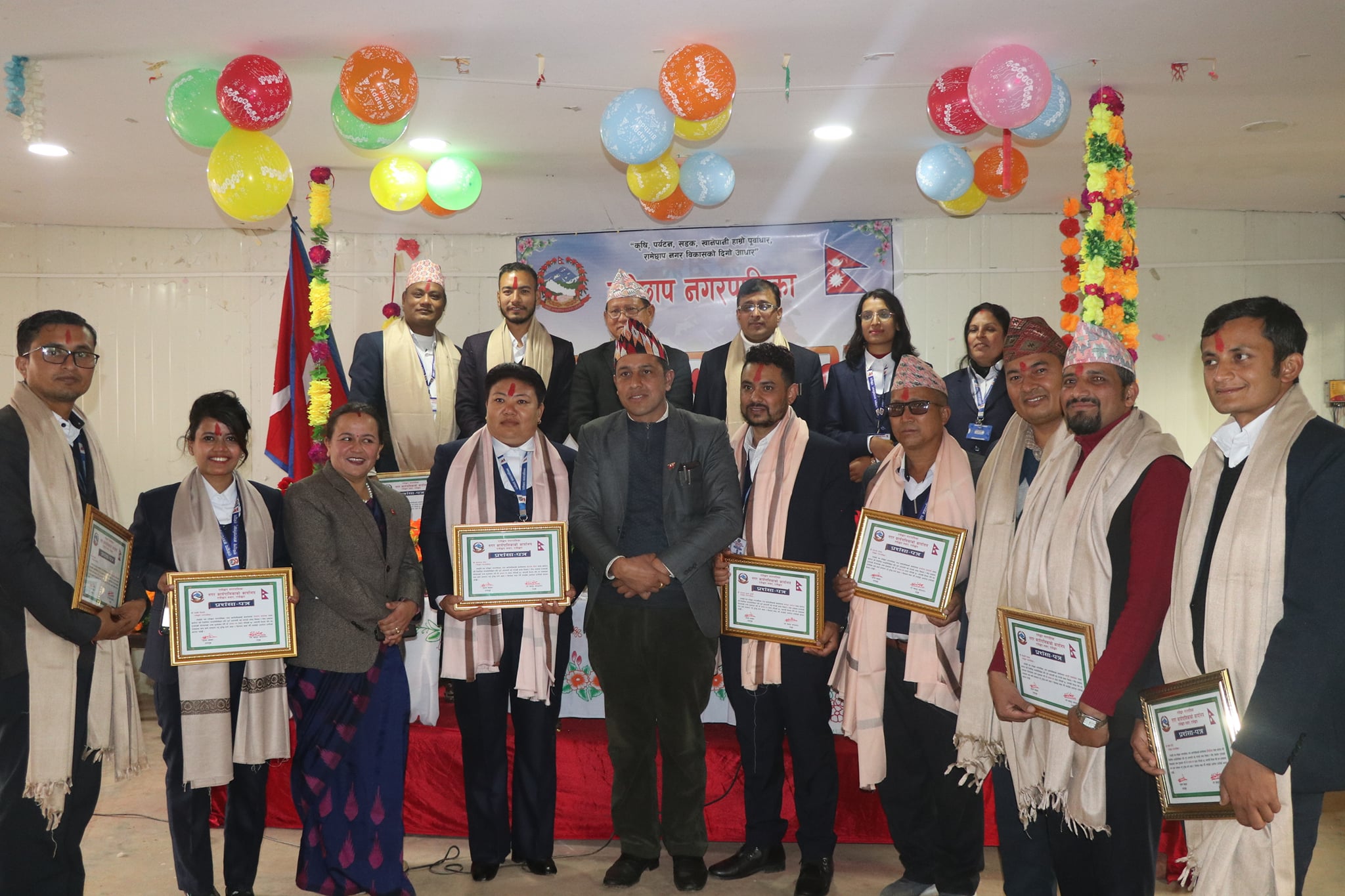नगरसभामा नगरपालिकोको समग्र विकास र सेवा प्रवाहमा योगदान पुर्याएको भन्दै कर्मचारीहरुलाई नगरप्रमुख थापामगर र नगर उपप्रमुख सृजना खड्काले संयुक्त रुपमा प्रशंसा पत्र मार्फत सम्मान गरेका थिए ।