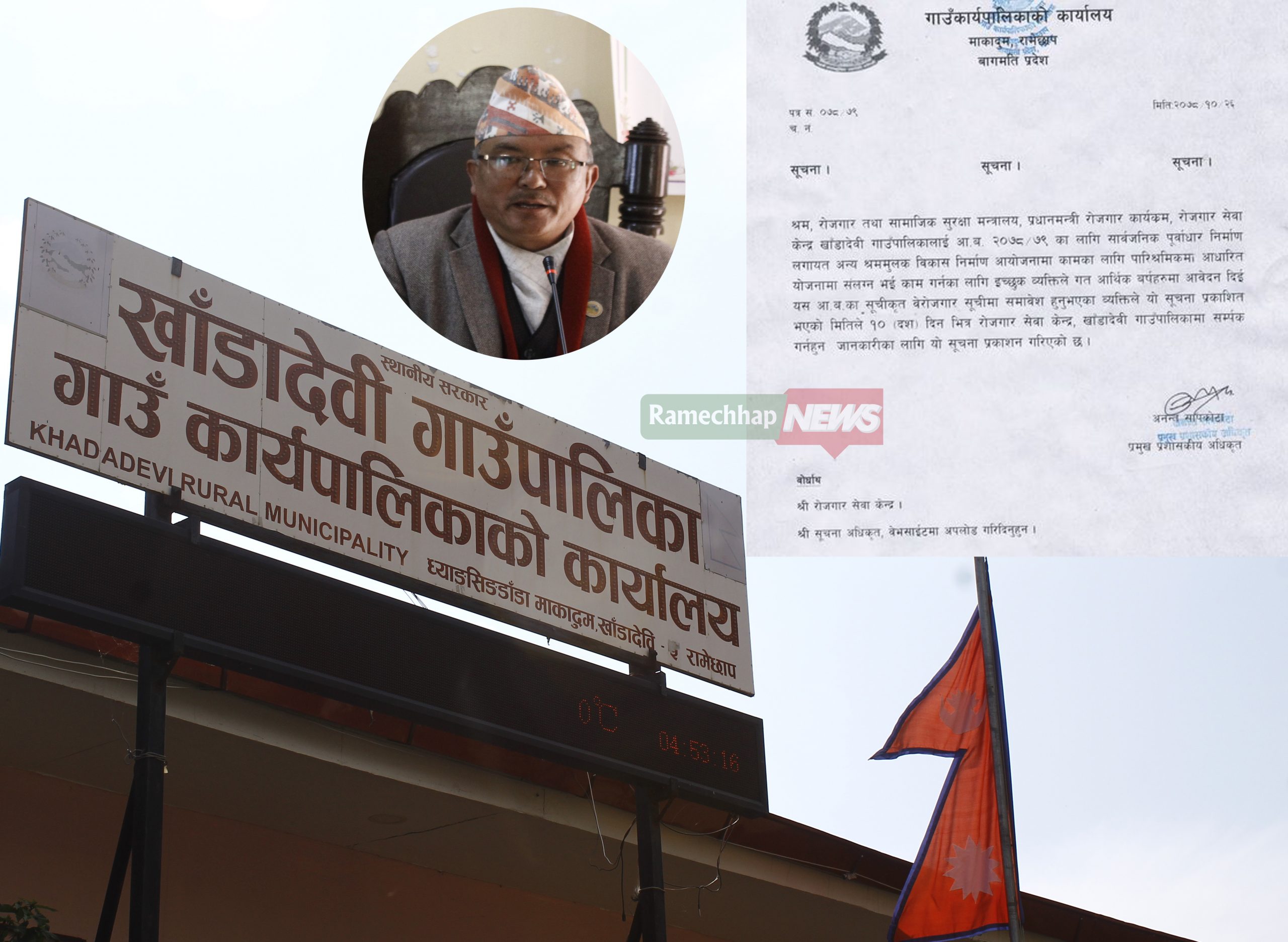 खाँडादेवी गाउँपालिकाका अध्यक्ष प्रेम बहादुर तामाङले रोजगारी नपाए गाउँपालिकामा सम्पर्क गर्न आग्रह गरेका छन् । उनले गाउँपालिका युवाहरुको लागि रोजगारी दिन तयार रहेको बताउदै यही बेराजगार भएको अवस्थामा गाउँपालिकामा सम्पर्क गर्न आग्रह गरेका हुन् । उनले रामेछाप न्युजसँग भने,‘प्रधानमन्त्री रोजगार कार्यक्रम अन्तर्गत गाउँपालिकाका एक हजार जनाले फर्म भरेपनि अहिले काम गर्ने बेलामा पनि रोजगारी चाहियो भनेर आएका छैनन् ।’