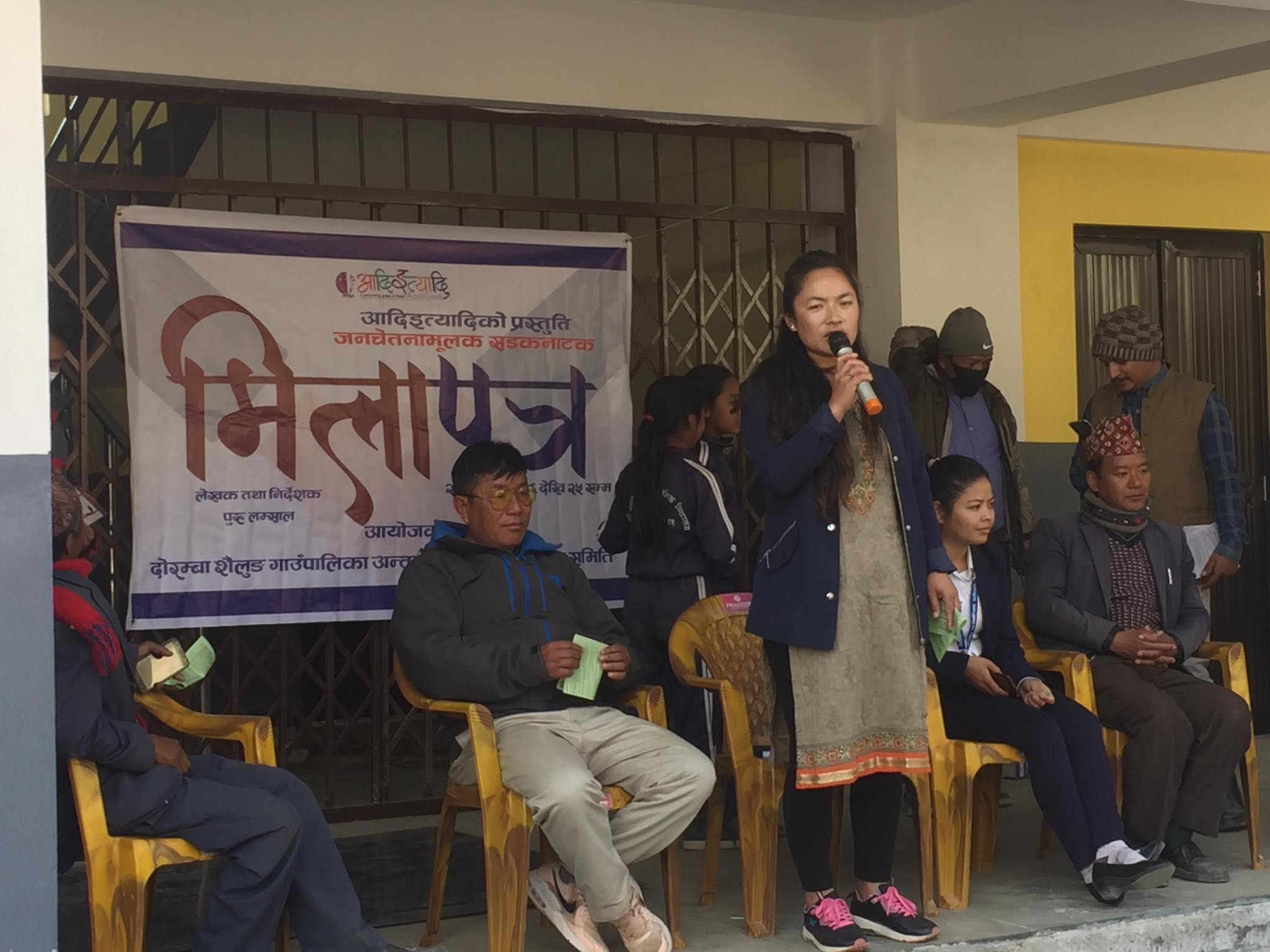 दोरम्बा शैलुङ गाउँपालिकाकी उपाध्यक्ष एवं न्यायिक समितिका संयोजक कृशला घिसिङले गाउँपालिकाभित्र रहेका विद्यमान सामाजिक विकृतिका घटनालाई हटाउन नाटक मार्फत अभियान सञ्चालन गरिएको बताए
