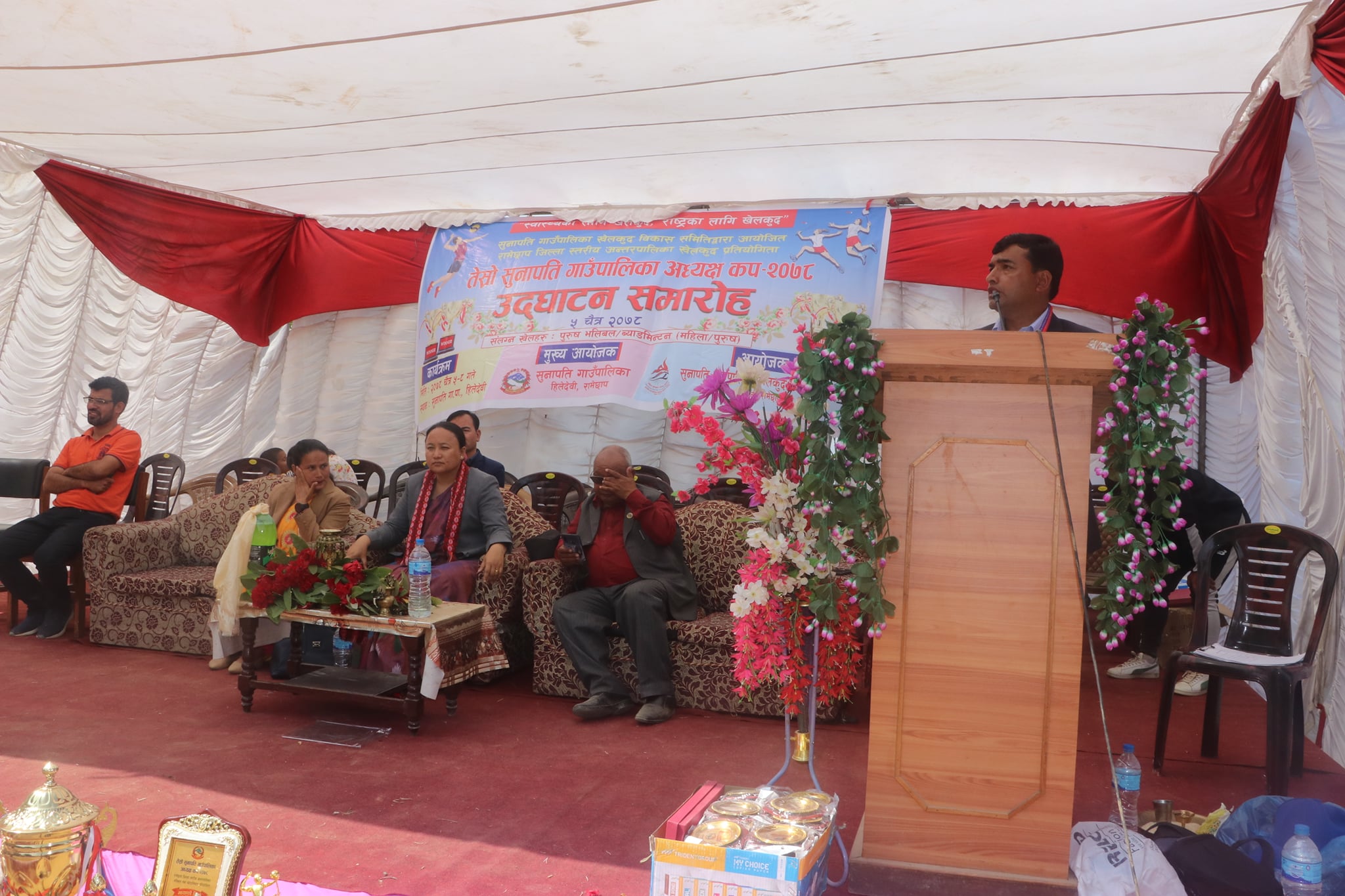 उदघाटन कार्यक्रममा माओवादी केन्द्रका केन्द्रीय सदस्य युवराज चौलागाई, गाउँपालिकाका अध्यक्ष धावा लामा, उपाध्यक्ष गिता विष्ट, दोरम्बा शैलुङ गाउँपालिकाका उपाध्यक्ष कृशला घिसिङ, माओवादी केन्द्र सुनापति गाउँ कमिटीका संयोजक पेमा लामा, माओवादी दोरम्बा शैलुङ गाउँकमिटीका अध्यक्ष हिरा श्रेष्ठ, नेकपा एकीकृत समाजवादी रामेछापका सचिव लालसिंह घिसिङ, सुनापति गाउँपालिकाका प्रमुख प्रशासकीय अधिकृत कमलराज श्रेष्ठ लगायतको सहभागीता रहेको थियो ।