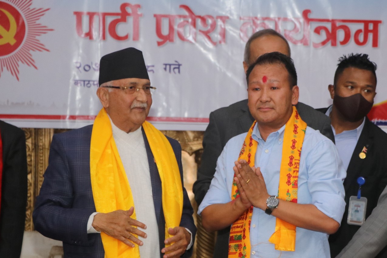 माओवादी रामेछापका नेता शेर्पा एमाले प्रवेश, अध्यक्ष ओलीले गरे स्वागत