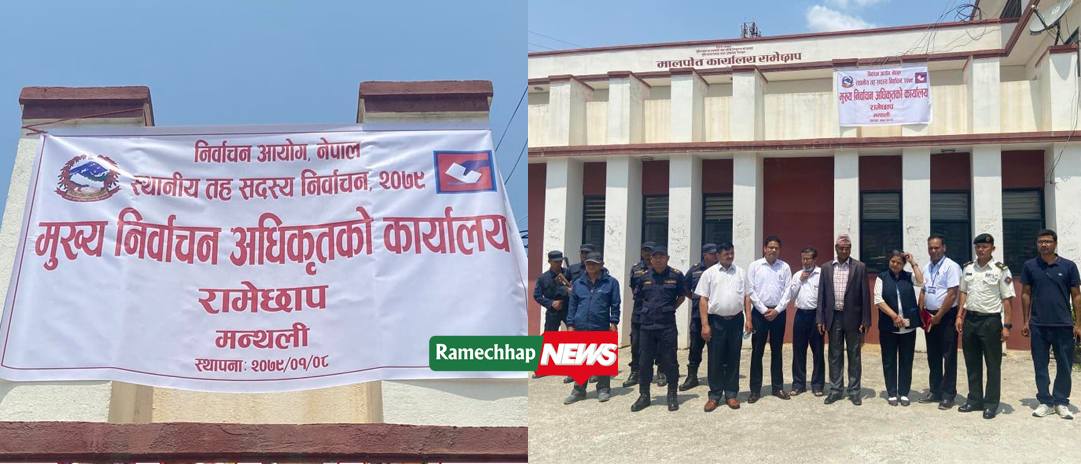 वैशाख ३० गते हुने स्थानीय तहको निर्वाचनको लागि रामेछापको आठ वटै स्थानीय तहमा आजबाट निर्वाचन अधिकृतको कार्यालय स्थापना भएको छ । जिल्लाको सदरमुकाम समेत रहेको मन्थलीमा मुख्य निर्वाचन अधिकृतको कार्यालय आजबाट सञ्चालनमा आएको छ । जिल्ला मातपोल कार्यालयमा मुख्य निर्वाचन अधिकृतको कार्यालयको रामेछापका प्रमुख जिल्ला अधिकारी दीपक कुमार पहाडीले उदघाटन गरेका छन् ।